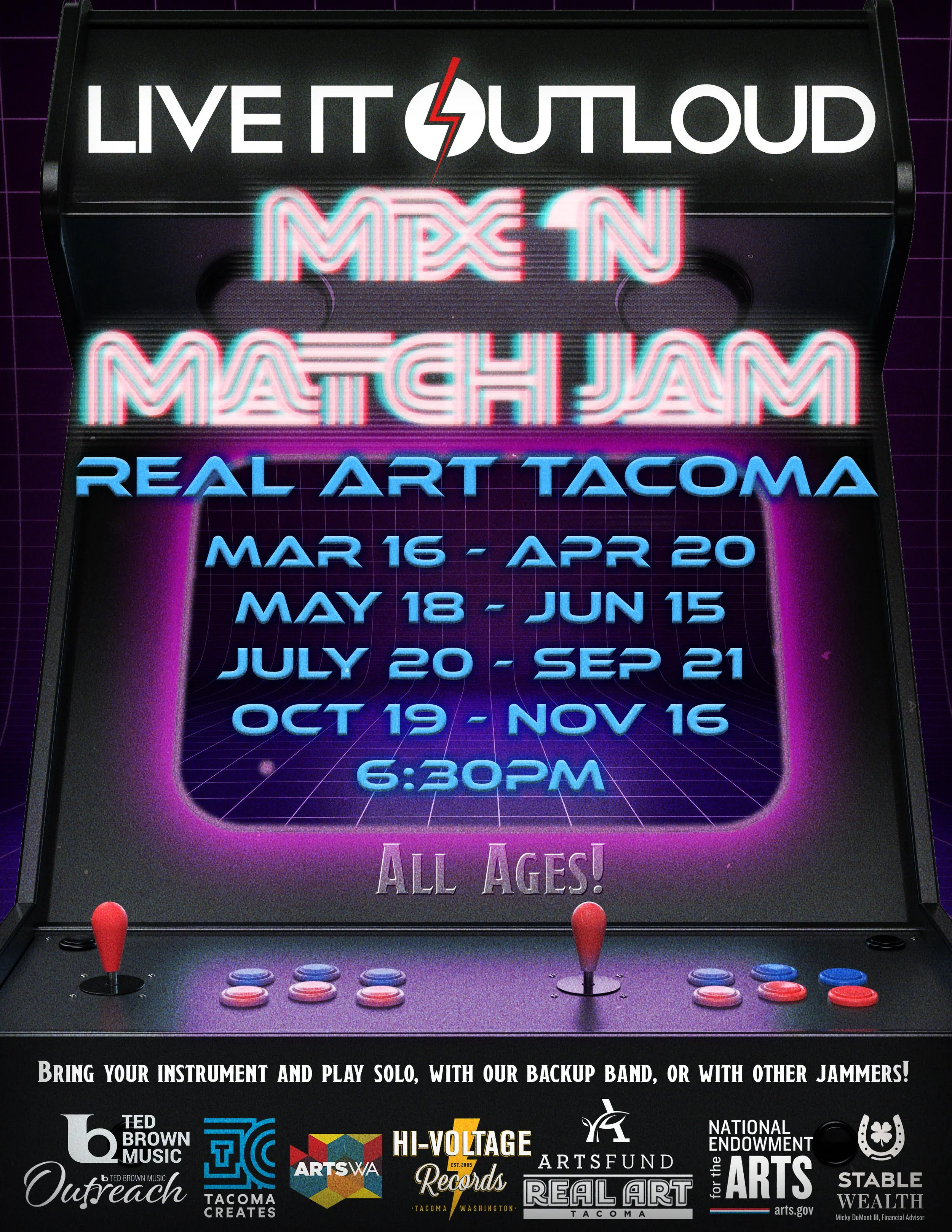 ****Reminder that Real Art is a 100% Drug & Alcohol free venue space. All alcoholic beverages must be consumed inside Beyond ThunderDome Cafe. We strive to maintain a safe, inclusive, and supportive community. Please consider the personal space you take up and respect those around you. Our venue is wheelchair accessible and has gender neutral bathrooms. Please ask if you have any questions. info@realarttacoma.com****