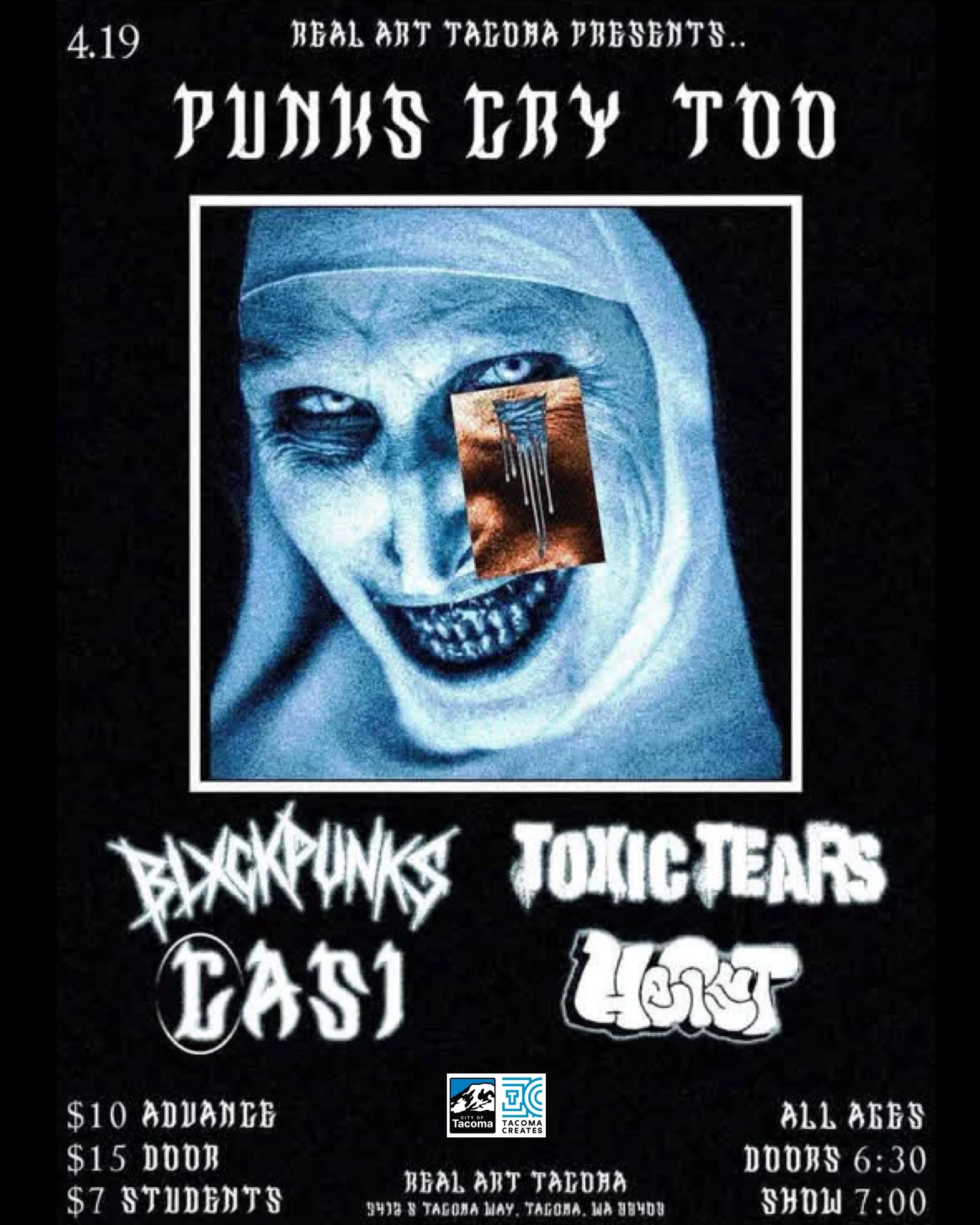 *Reduced Door Ticket Prices are funded by Tacoma Creates. Get more info about Tacoma Creates and how its helping Real Art Tacoma HERE. * **Refunds are only issued if an event is being rescheduled or cancelled.** ***Real Art Tacoma is a 100% Drug & Alcohol free venue space. All alcoholic beverages must be consumed inside Beyond ThunderDome Café. We strive to maintain a safe, inclusive, and supportive community.*** ****Our venue is wheelchair accessible and has gender neutral bathrooms. Please ask if you have any questions. info@realarttacoma.com **** *****General Admission is for entrance to event, events are standing room only unless specified. Reasonable accommodations for seating are available; but limited please let us know upon arrival or email us at Management@realarttacoma.com. There is no guarantees that one will receive seating for an event unless purchased tickets specifically stated so or reaching out to staff..*****