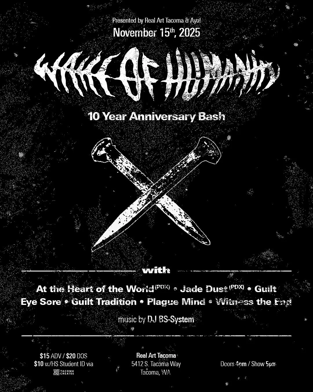 **Refunds are only issued if an event is being rescheduled or cancelled.** ***Real Art Tacoma is a 100% Drug & Alcohol free venue space. All alcoholic beverages must be consumed inside Beyond ThunderDome Café. We strive to maintain a safe, inclusive, and supportive community.*** ****Our venue is wheelchair accessible and has gender neutral bathrooms. Please ask if you have any questions. info@realarttacoma.com **** *****General Admission is for entrance to event, events are standing room only unless specified. Reasonable accommodations for seating are available; but limited please let us know upon arrival or email us at Management@realarttacoma.com. There is no guarantees that one will receive seating for an event unless purchased tickets specifically stated so or reaching out to staff..*****