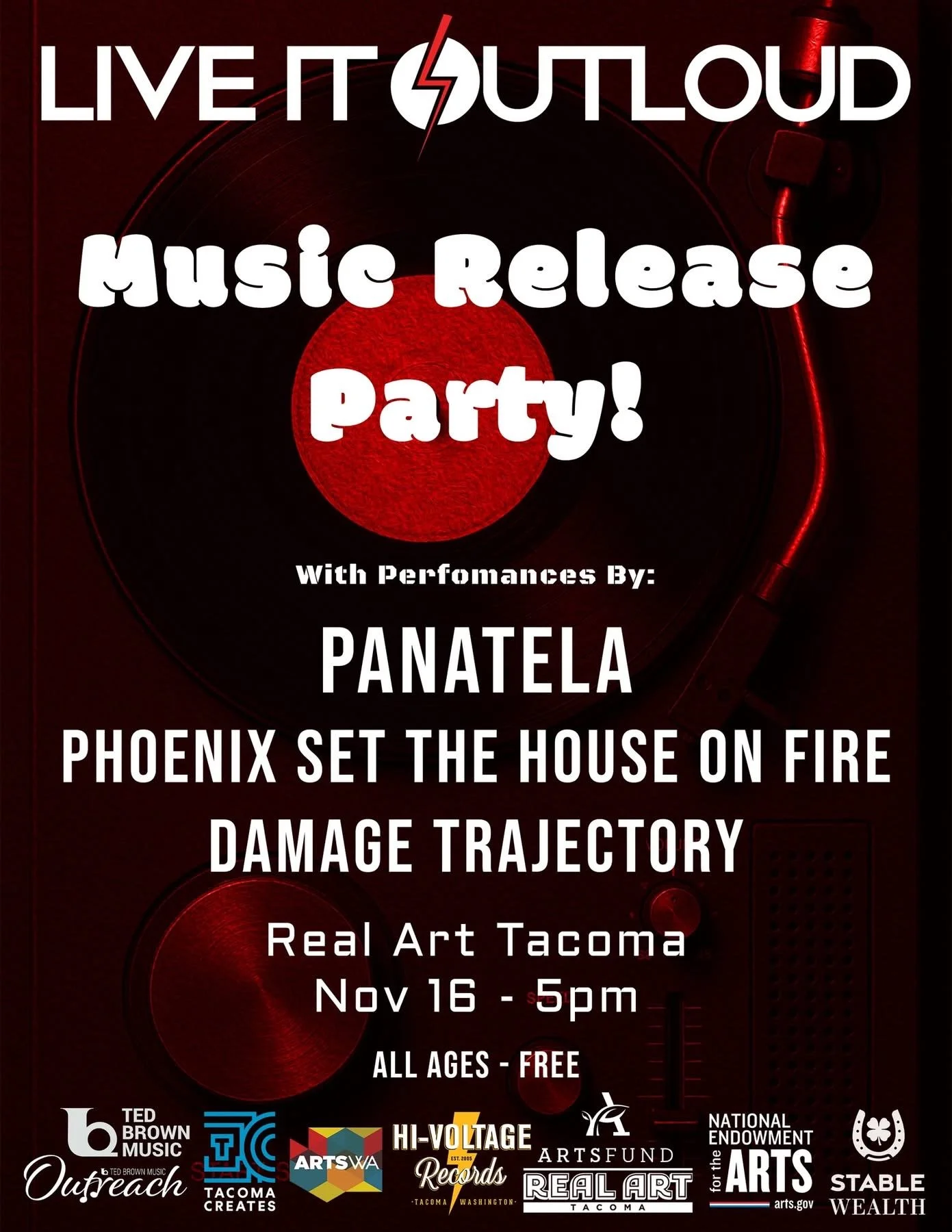 ****Reminder that Real Art is a 100% Drug & Alcohol free venue space. All alcoholic beverages must be consumed inside Beyond ThunderDome Cafe. We strive to maintain a safe, inclusive, and supportive community. Please consider the personal space you take up and respect those around you. Our venue is wheelchair accessible and has gender neutral bathrooms. Please ask if you have any questions. info@realarttacoma.com****