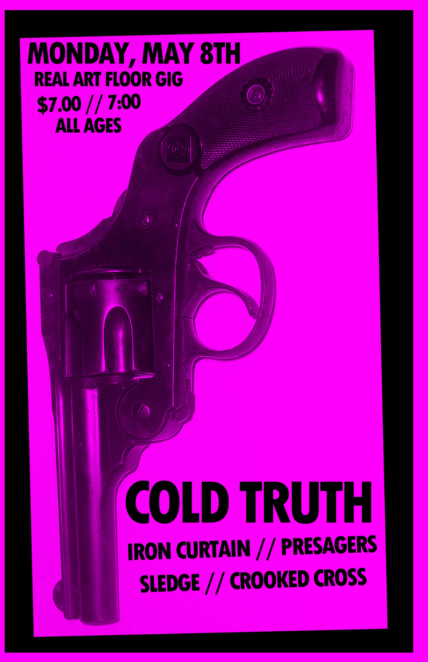 COLD TRUTH, Iron Curtain, Presagers, Sledge, Crooked Cross Monday, May 8, 2017 7:00 PM 10:00 PM 19:00 22:00 Google Calendar ICS COLD TRUTHIRON CURTAINPRESAGERSSLEDGECROOKED CROSS