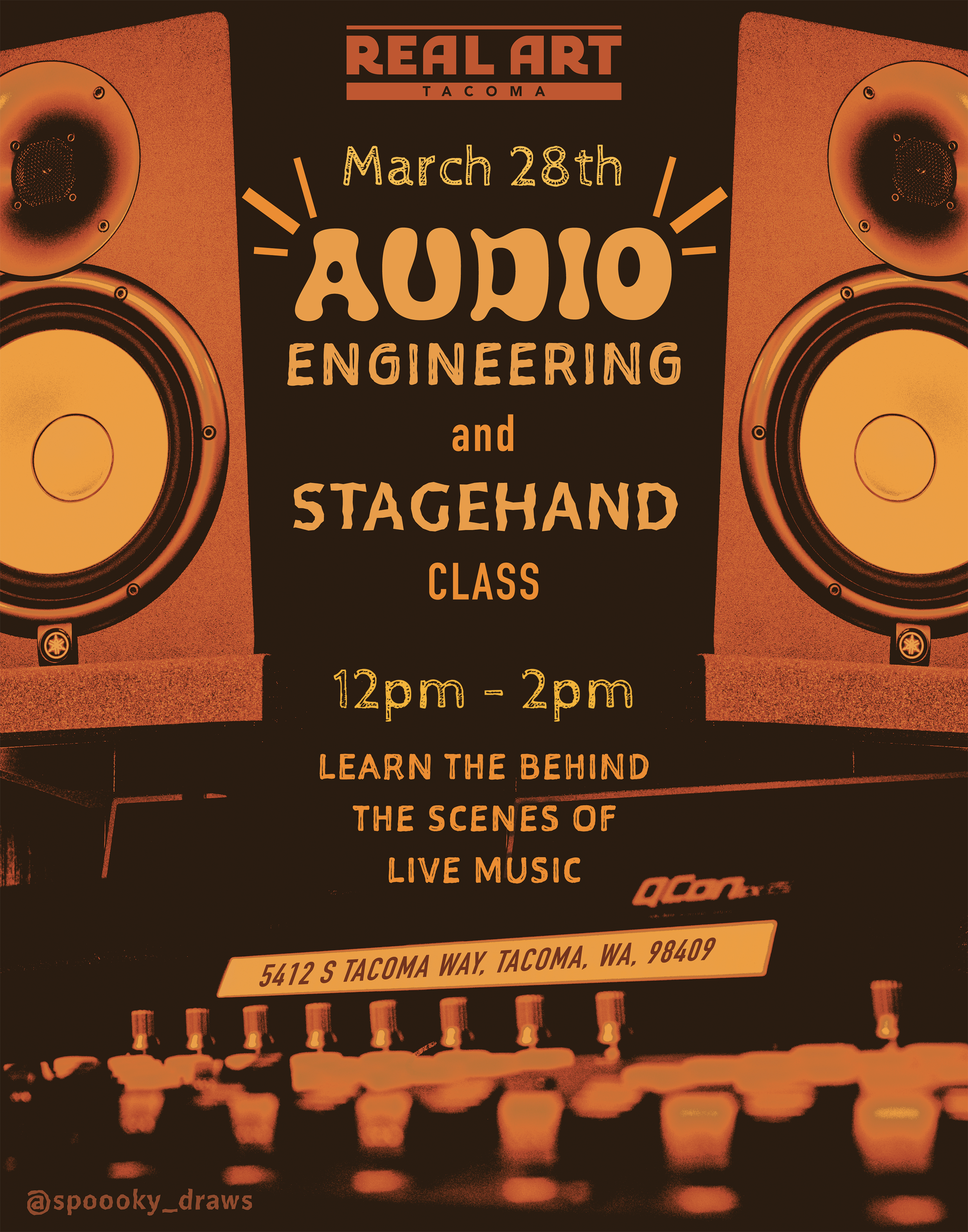 Ever wondered how a show is run? Want to learn the behind the scenes of live music? Come learn about industry skills and equipment at our Audio Engineering & Stagehand Class! We'll cover the basics of stagehand and audio engineering skills, duties, and equipment all in one class. No prior experience necessary!!! This class is limited to 10 participants- click here or below to reserve a spot!