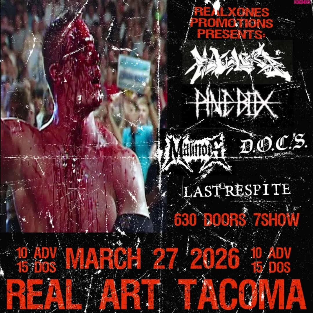 *Reduced Door Ticket Prices are funded by Tacoma Creates. Get more info about Tacoma Creates and how its helping Real Art Tacoma HERE. * **Refunds are only issued if an event is being rescheduled or cancelled.** ***Real Art Tacoma is a 100% Drug & Alcohol free venue space. All alcoholic beverages must be consumed inside Beyond ThunderDome Café. We strive to maintain a safe, inclusive, and supportive community.*** ****Our venue is wheelchair accessible and has gender neutral bathrooms. Please ask if you have any questions. info@realarttacoma.com **** *****General Admission is for entrance to event, events are standing room only unless specified. Reasonable accommodations for seating are available; but limited please let us know upon arrival or email us at Management@realarttacoma.com. There is no guarantees that one will receive seating for an event unless purchased tickets specifically stated so or reaching out to staff..*****